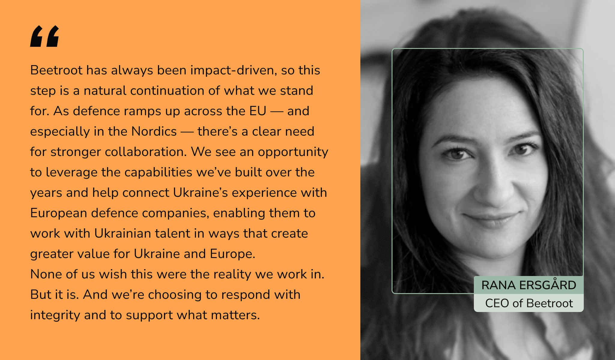 Since 2012, supporting Ukraine has been central to Beetroot’s purpose. We’re evolving the capabilities we’ve built over nearly 15 years to contribute more directly to the defence of Ukraine and Europe.